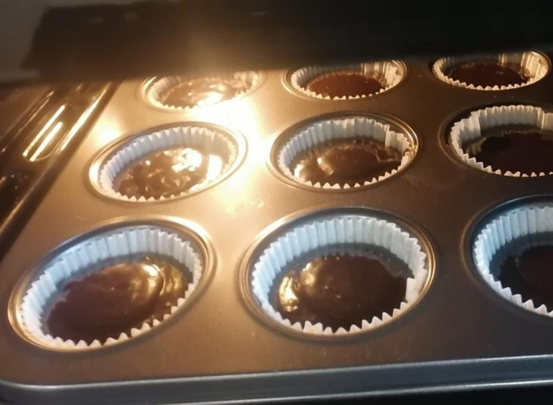 Залейте кондитерскую массу в ячейки и отправьте в духовку.