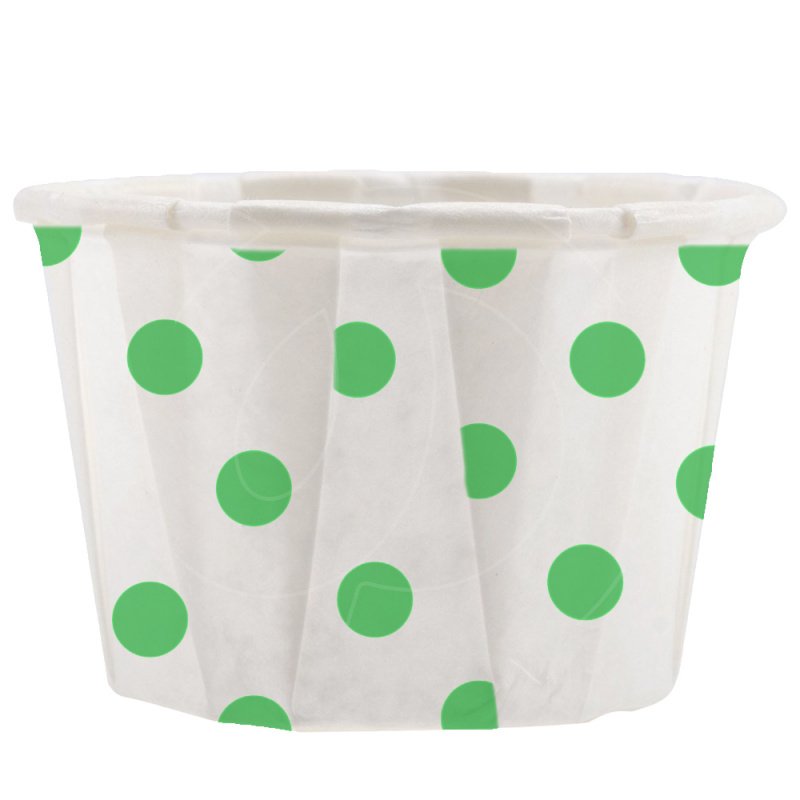 Капсула бумажная с подворотом Белая в зелёный горошек D50 H40 1 шт