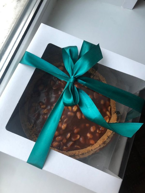 Эта упаковка подходит для небольших тортиков «к чаю», для чизкейков и пирогов. Внутри коробка имеет глянцевое покрытие. Рекомендую в ней использовать плотную подложку под торт, так как дно коробки тонкое и не совсем прочное. У коробочки есть два окна, тортик в ней смотрится аккуратно и аппетитно. Ах, да, и цена коробочки радует. Бюджетный, но при этом очень хороший вариант упаковки. Обычно дополняю его атласной лентой с бантом.