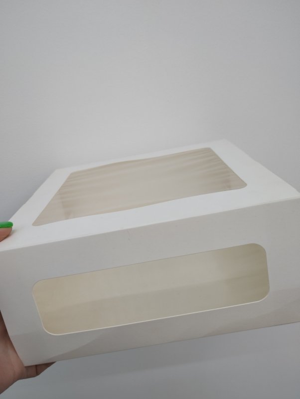 Для маленьких, небольших тортиков эта коробочка идеально подходит. Окна с разных сторон идеальны, если вы хотите, чтобы ваш тортик было видно со всех сторон. Буду брать и не один раз.
