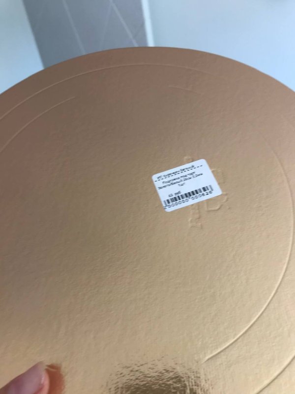 Плотная хорошая подложка для тортика до 4-5 кг. Я чаще использую белую сторону этой подложки, хотя у золотистой части края выглядят аккуратнее. С подложки легко убираются остатки крема или ганаша (в отличии от деревянной, например).