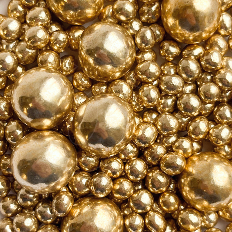 Золотой оттенок шариков будет выигрышно смотреться на тортах как с белой, так и с темной глазурью.