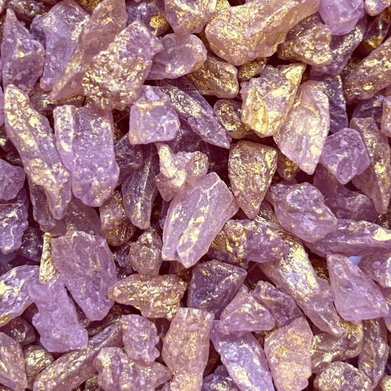 Сиреневые сияющие сахарные кристаллики с золотым блеском.