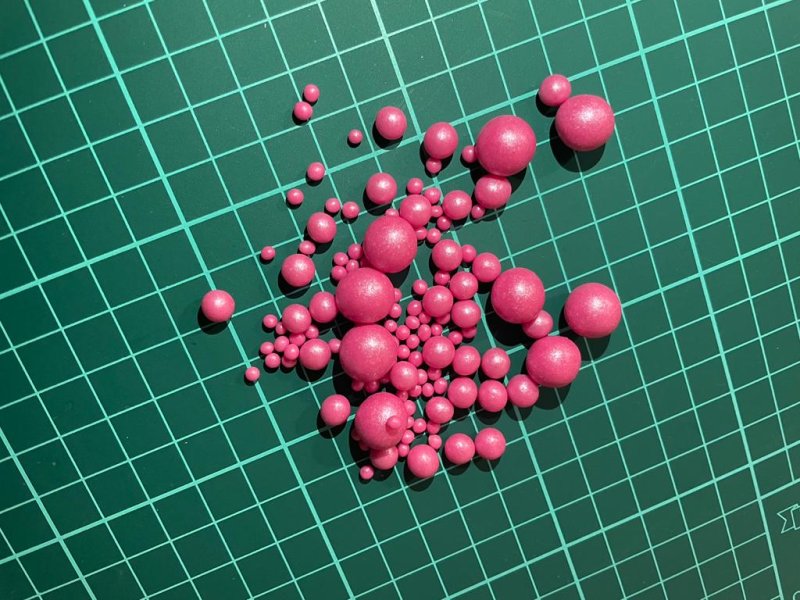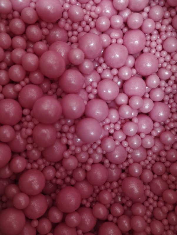 Жемчужная посыпка покрыта ярким пищевым блеском розового цвета.