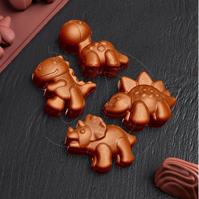 Доставка Форма силиконовая для шоколада "Динозаврики" 12 шт из магазина в вашем городе: