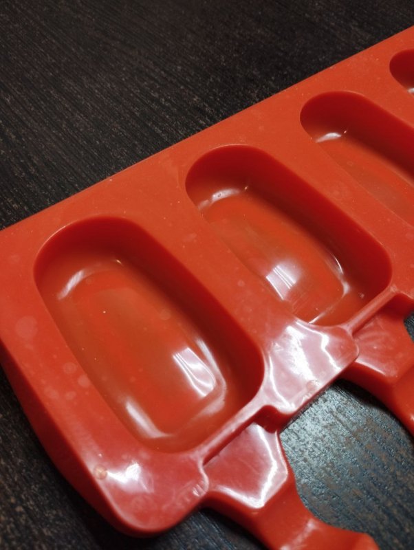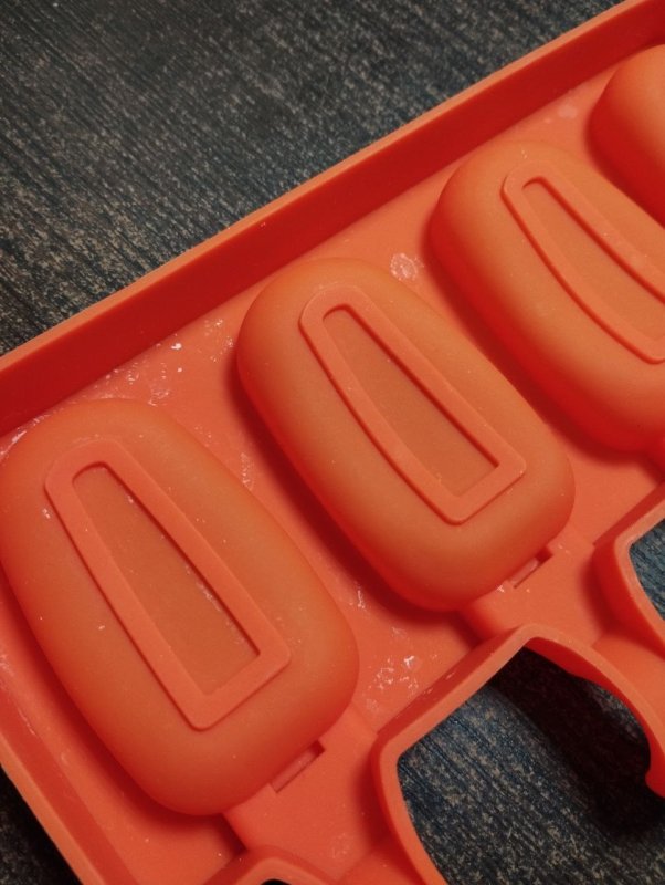 На одной форме 4 ячейки. Каждая оснащена углублениями для палочек эскимо.