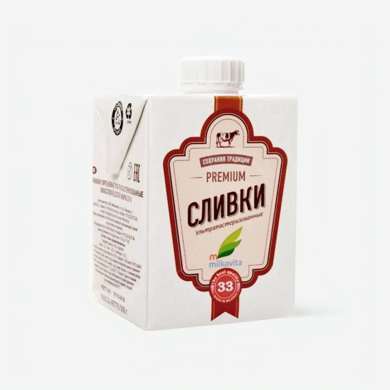 Доставка Сливки ультрапастеризованные MILKAVITA Премиум 33% 500 мл из магазина в вашем городе: