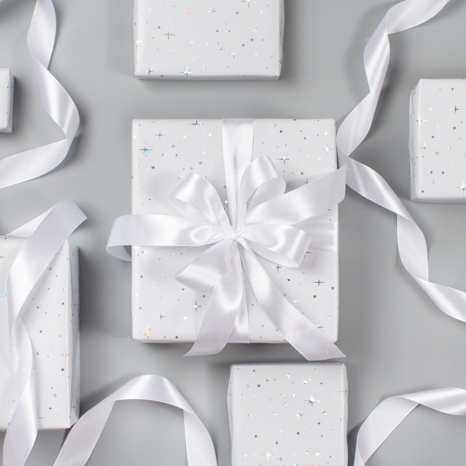 Добавьте праздничного настроения с помощью ленты белого цвета для декора и упаковки ваших десертов или подарков.