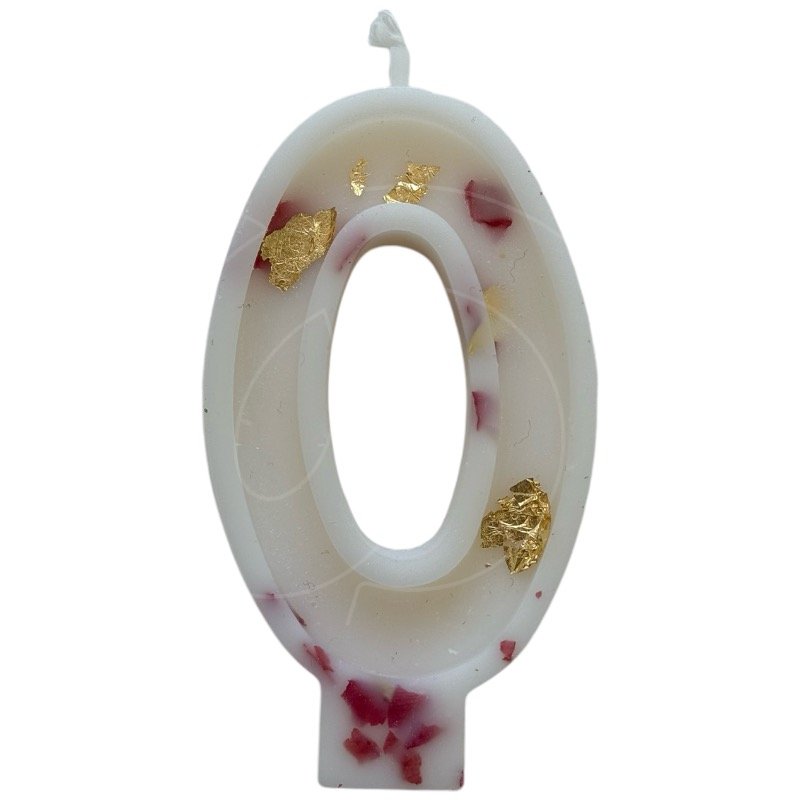 Доставка Свеча декоративная Цифра "0" Белая с розой и поталью из магазина в вашем городе: