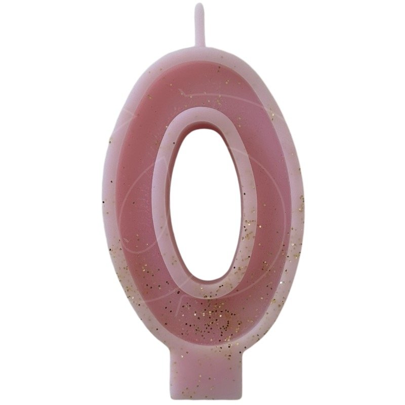 Свеча декоративная Цифра "0" Розовая с блёстками