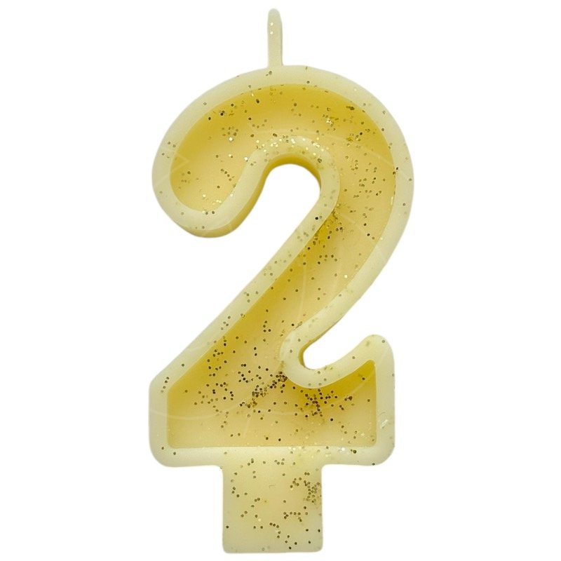 Доставка Свеча декоративная Цифра "2" Жёлтая с блёстками из магазина в вашем городе:
