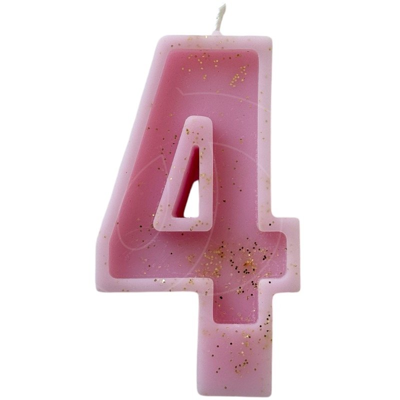 Свеча декоративная Цифра "4" Розовая с блёстками