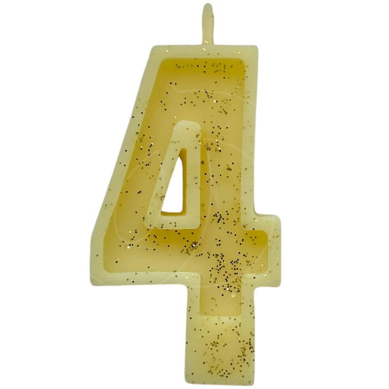 Свеча декоративная Цифра "4" Жёлтая с блёстками
