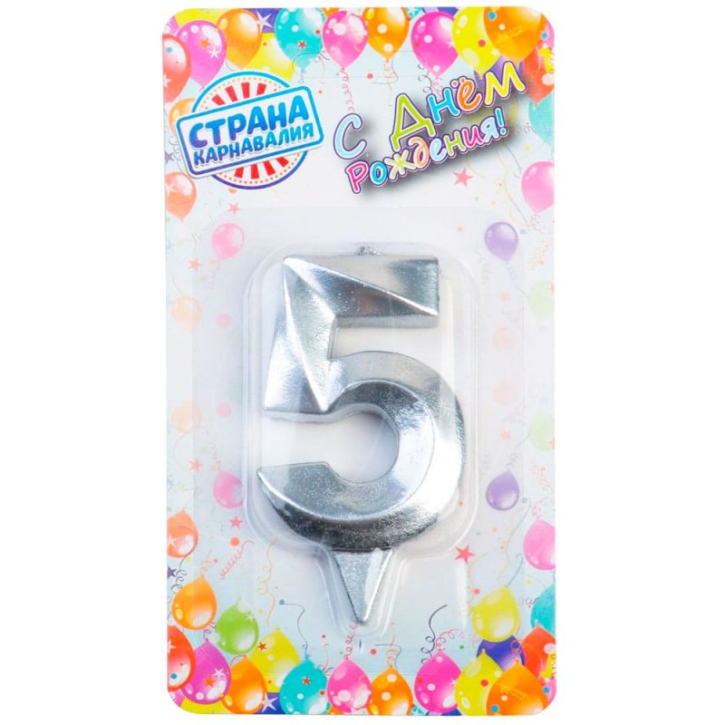 Доставка Свеча декоративная Цифра "5" Грань Серебро из магазина в вашем городе: