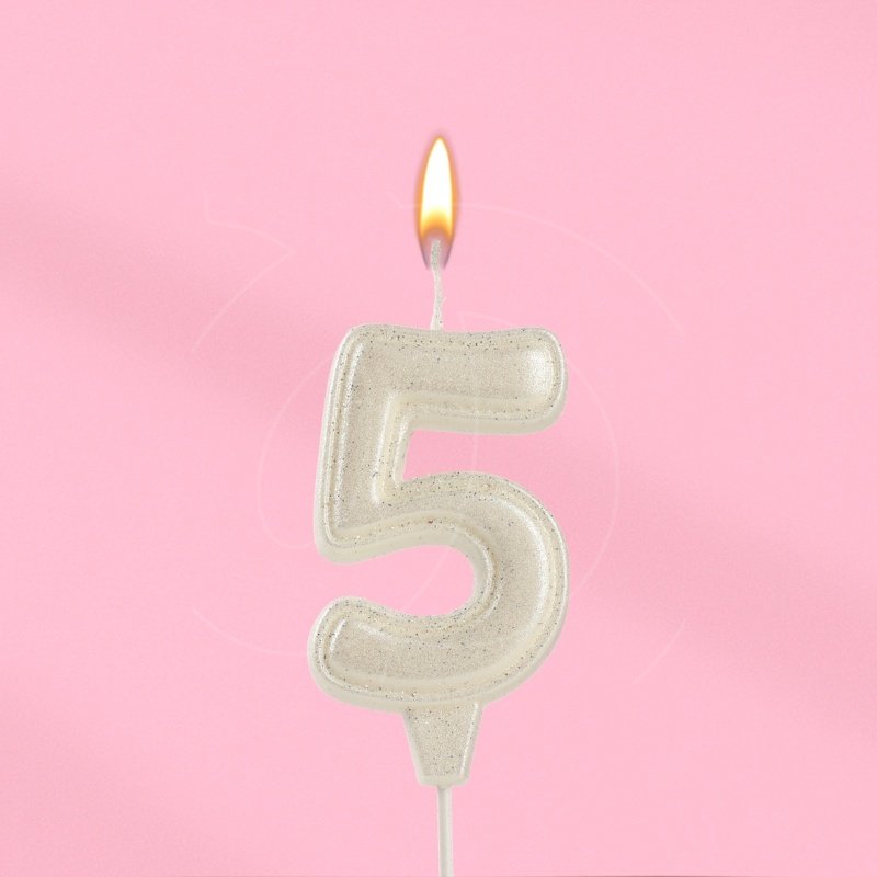 Свеча декоративная Цифра "5" Жемчужный перламутр с блёстками
