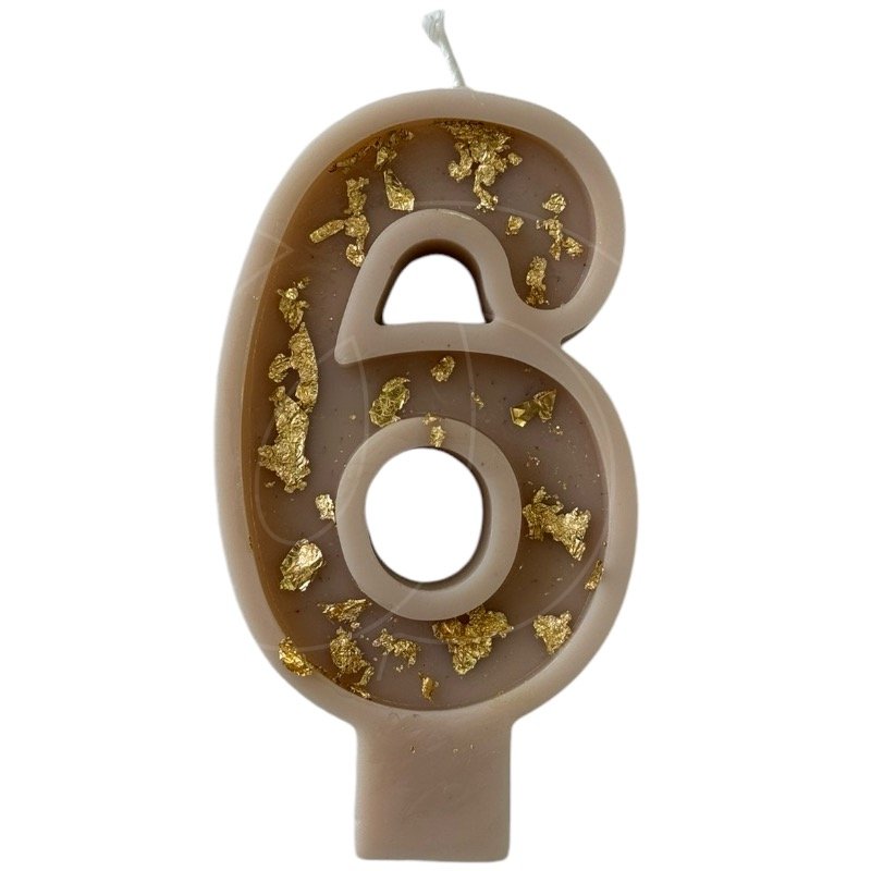 Доставка Свеча декоративная Цифра "6" Бежевая поталь из магазина в вашем городе:
