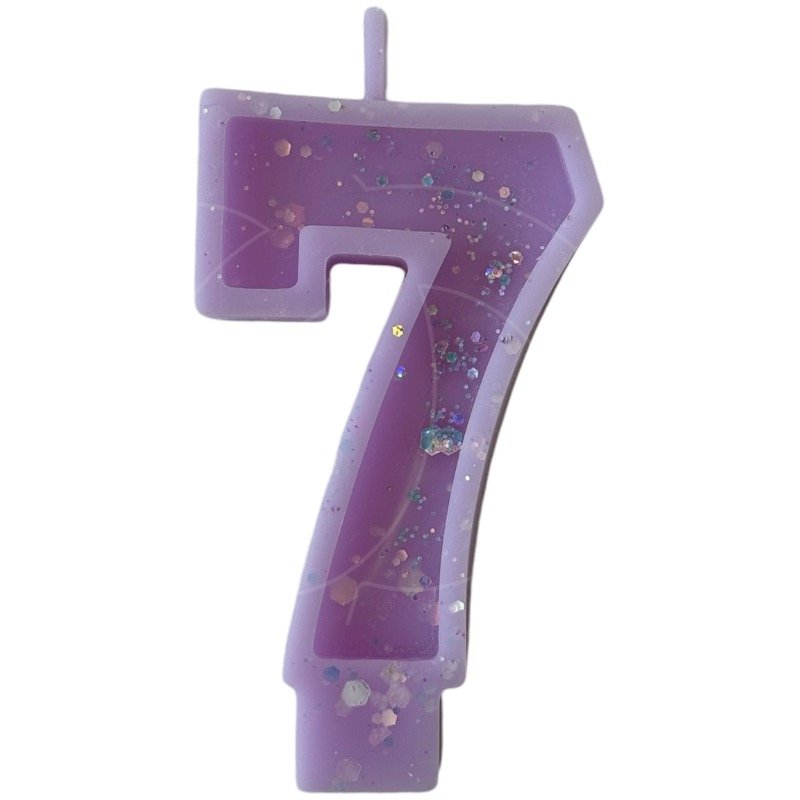 Доставка Свеча декоративная Цифра "7" Сиреневая с блёстками из магазина в вашем городе: