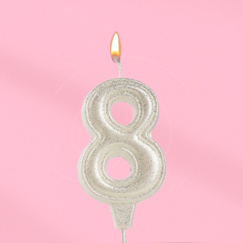 Доставка Свеча декоративная Цифра "8" Жемчужный перламутр с блёстками из магазина в вашем городе: