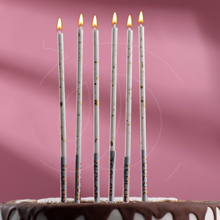 Свечи расположены на тонком основании, которое удобно крепить на праздничном торте и легко вынимать.