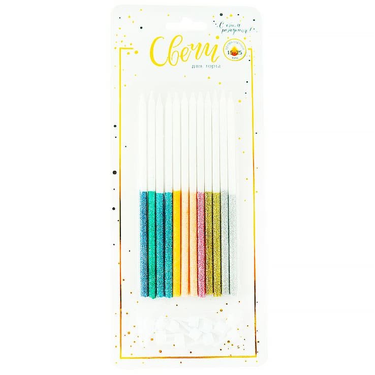 Доставка Свечи декоративные "Блестящие половинки" 14,5 см 12 шт из магазина в вашем городе: