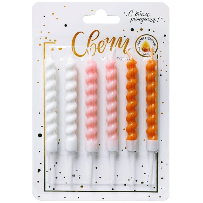 Доставка Свечи декоративные "Большие завитки" 8 см 6 шт из магазина в вашем городе:
