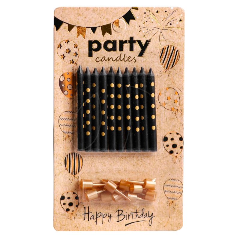 Свечи декоративные Чёрные в золотой горошек 10 шт
