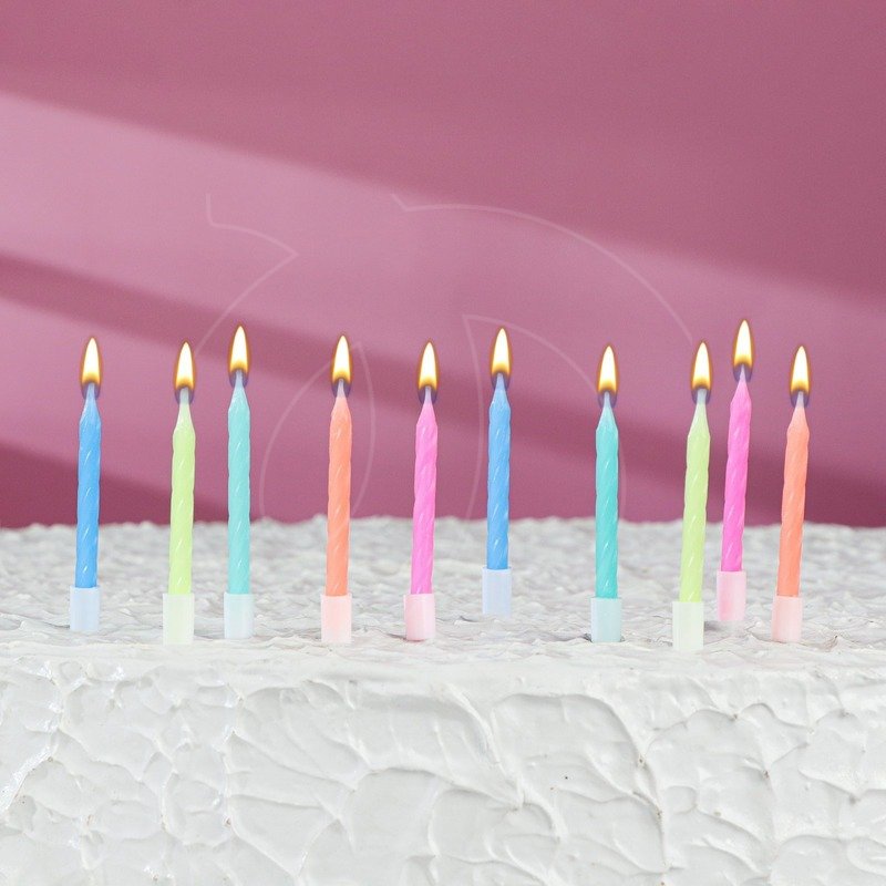 Свечи расположены на тонком основании, которое удобно крепить на праздничном торте и легко вынимать.