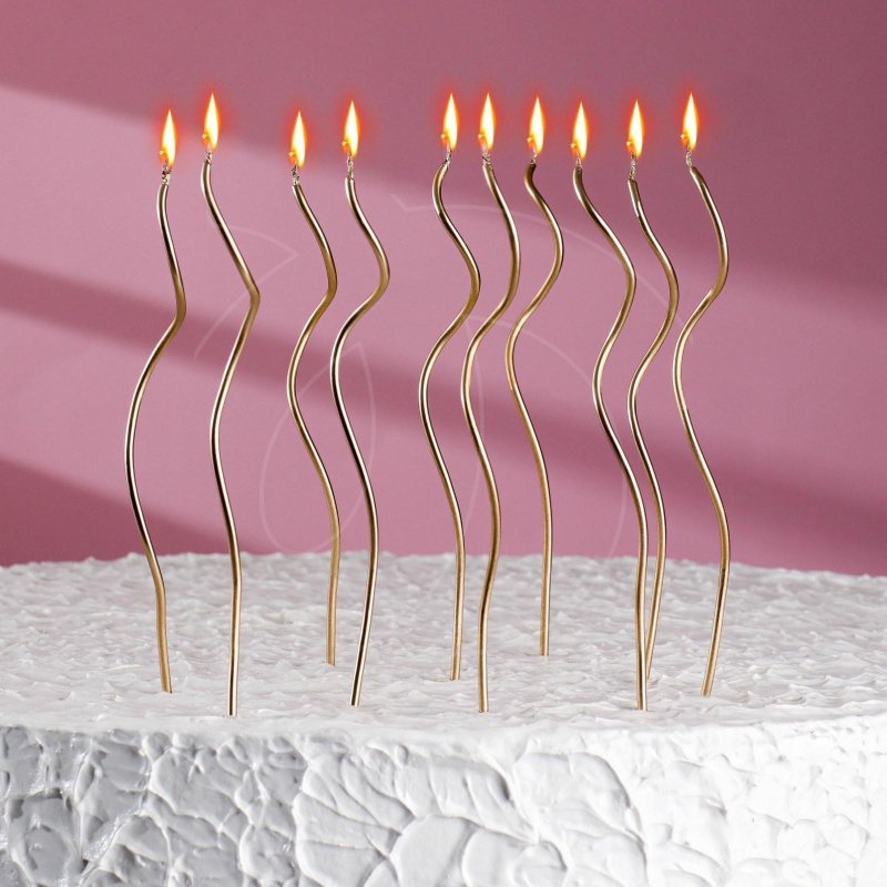 Доставка Свечи декоративные "Волнистые тонкие" Золотые 10 шт из магазина в вашем городе: