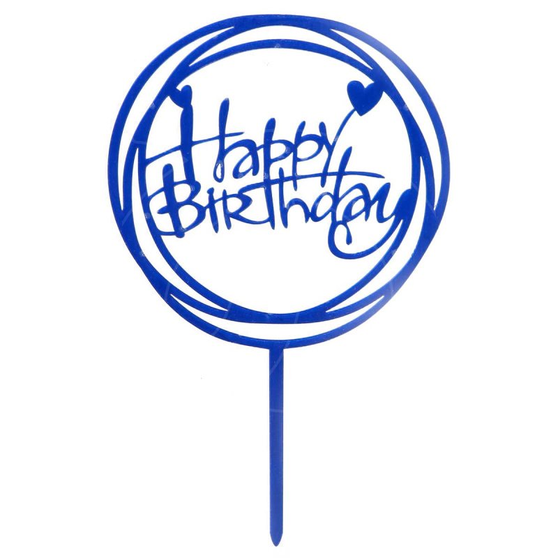 Доставка Топпер декоративный акриловый "Happy Birthday. Рамка" Синий из магазина в вашем городе: