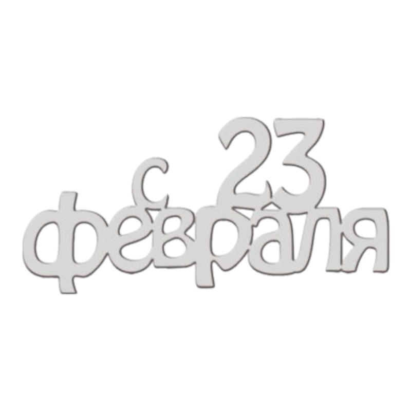 Топпер декоративный акриловый "С 23 февраля" Серебро 8х4 см