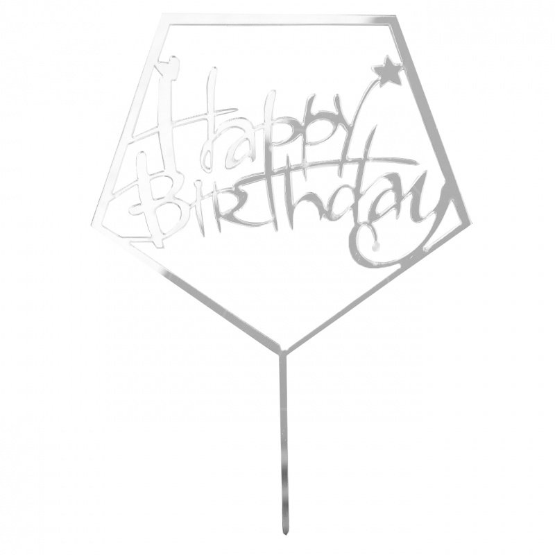 Доставка Топпер декоративный акриловый "С Днём Рождения" Серебро из магазина в вашем городе: