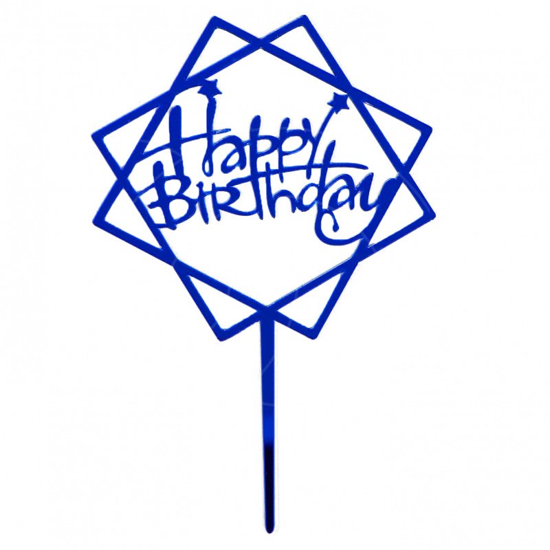 Доставка Топпер декоративный акриловый "С Днём Рождения" Синий из магазина в вашем городе: