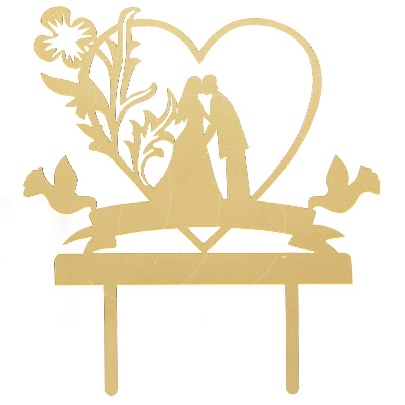 Доставка Топпер декоративный акриловый "Сердце с голубками" Золотой из магазина в вашем городе:
