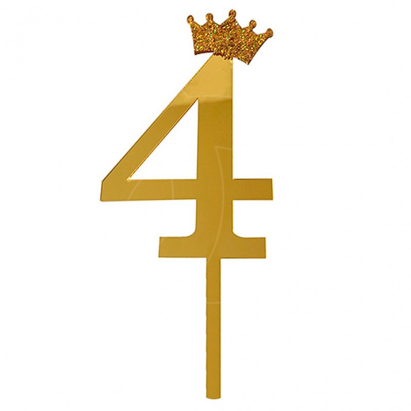 Доставка Топпер декоративный акриловый "Цифра 4" Золото из магазина в вашем городе:
