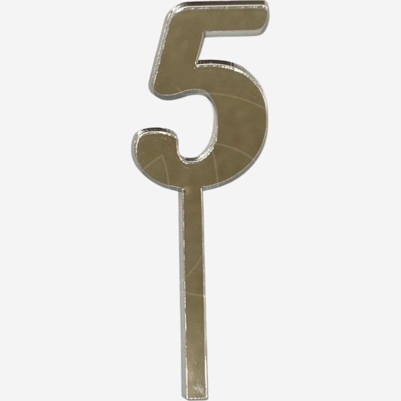 Доставка Топпер декоративный акриловый "Цифра 5" Серебро 9,5х3 см из магазина в вашем городе: