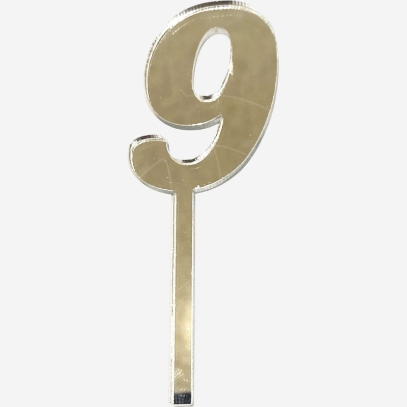 Доставка Топпер декоративный акриловый "Цифра 9" Серебро 9,5х3 см из магазина в вашем городе: