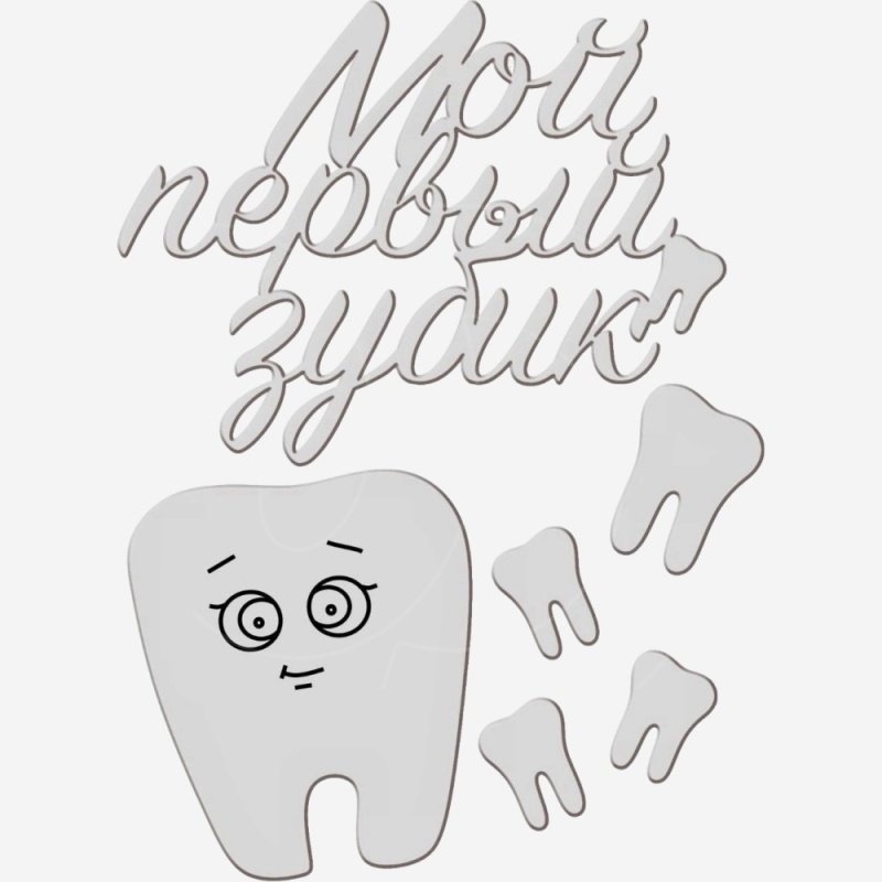 Доставка Топпер декоративный акриловый "Мой первый зубик" Серебро 10х8 см из магазина в вашем городе: